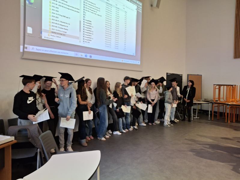 Les jeunes et les familles ont été accueillis par Monsieur Simon, notre nouveau chef d’établissement venu faire leur connaissance, Madame Heerman, responsable du niveau 3e, des collègues, en particulier les professeurs principaux en 3e l’an dernier : Mesdames Brossais, Letondeur et Porée Gagnet ainsi que Monsieur Lucas ou des personnels, en particulier madame Desmons pour les préparatifs du pot de l’amitié ou des personnels éducatifs les ayant accompagnés dans leur parcours.