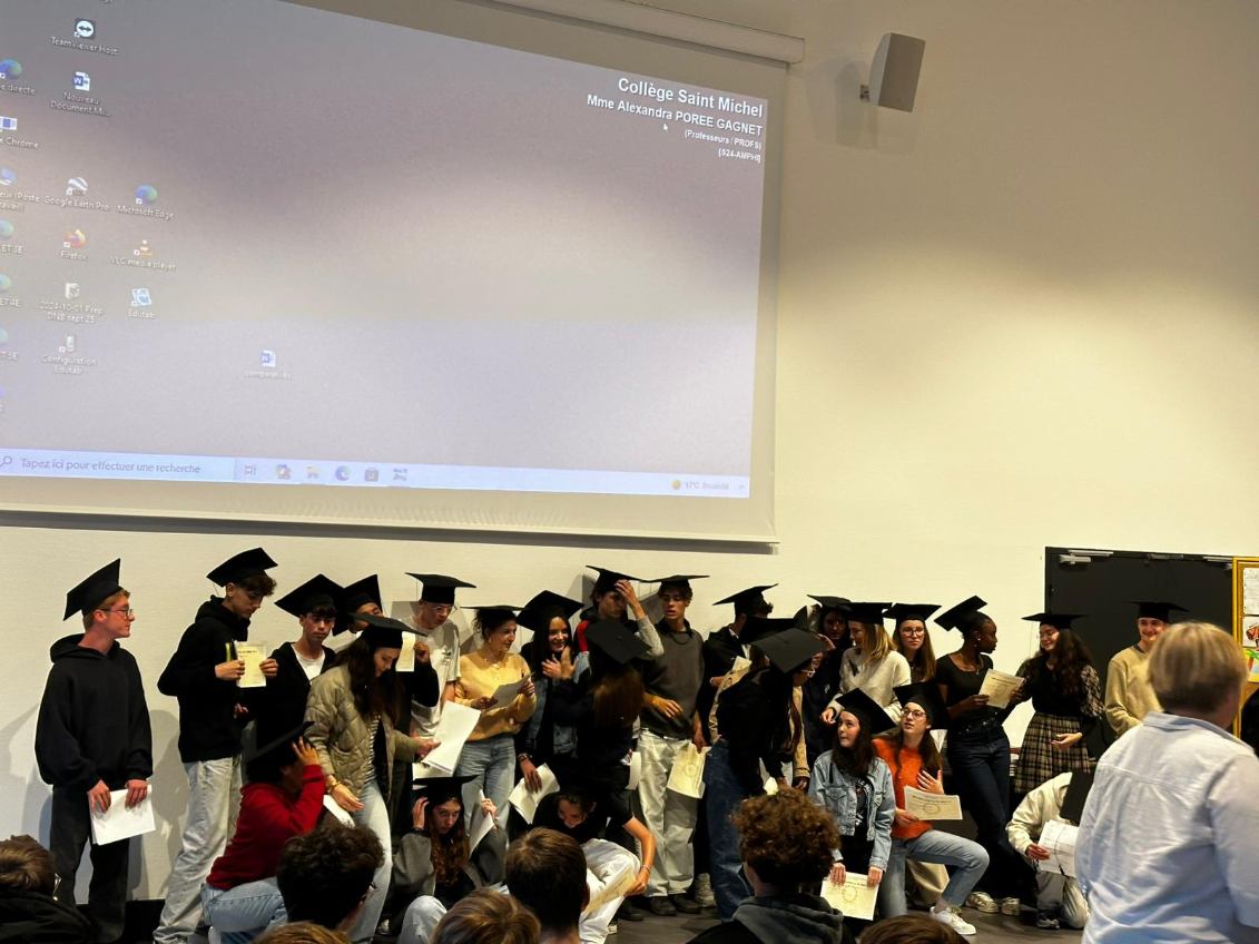 Comme chaque année à cette période, le Collège organise la cérémonie de remise du diplôme du Brevet aux anciens élèves ; L’occasion pour tous de partager un bon moment en se remémorant 4 années de souvenirs au collège et en détaillant cette rentrée inédite loin de Saint-Michel !