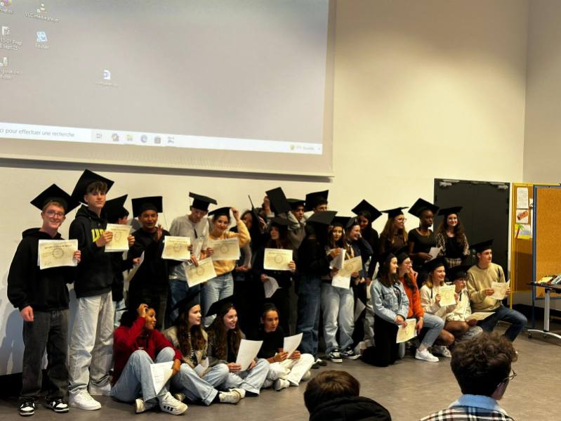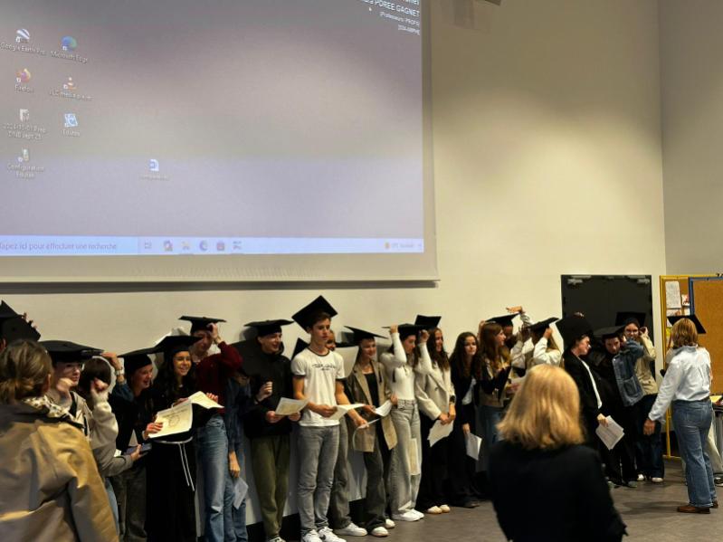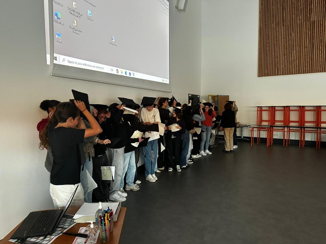 Les jeunes et les familles ont été accueillis par Monsieur Simon, notre nouveau chef d’établissement venu faire leur connaissance, Madame Heerman, responsable du niveau 3e, des collègues, en particulier les professeurs principaux en 3e l’an dernier : Mesdames Brossais, Letondeur et Porée Gagnet ainsi que Monsieur Lucas ou des personnels, en particulier madame Desmons pour les préparatifs du pot de l’amitié ou des personnels éducatifs les ayant accompagnés dans leur parcours.