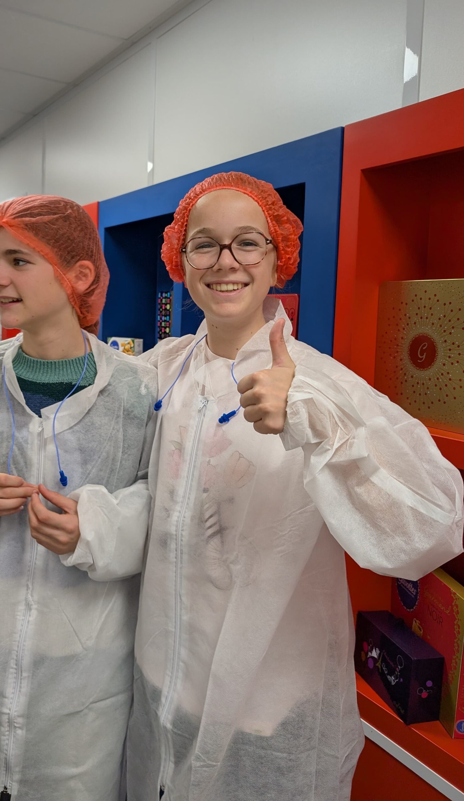 Équipés de charlottes, sur-chaussures et blouses, nous sommes partis à la découverte du processus de fabrication, de la préparation de la pâte jusqu’au conditionnement. Ce sont les robots qui nous ont le plus impressionnés. Les échanges avec le chef de la maintenance, l’ingénieure en agroalimentaire ou la responsable des Ressources humaines ont également été très intéressants. On a ainsi appris que le poids des paquets de gâteaux variait selon le pays destinataire : il est bien plus lourd pour les américains, par exemple !