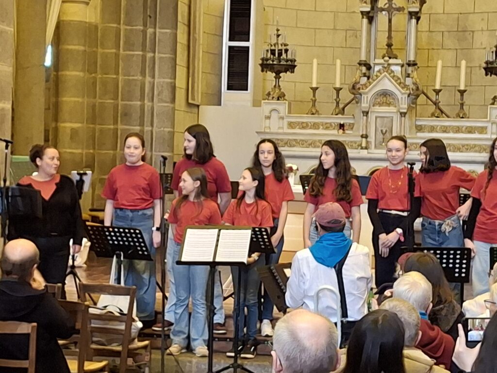Dimanche 25 janvier, un groupe d’élèves de la chorale de Mme Piolain, professeur d’éducation musicale et chorale au collège, était en concert à l’Eglise de Saint Aubin du Cormier pour un ensemble de titres entrainants.